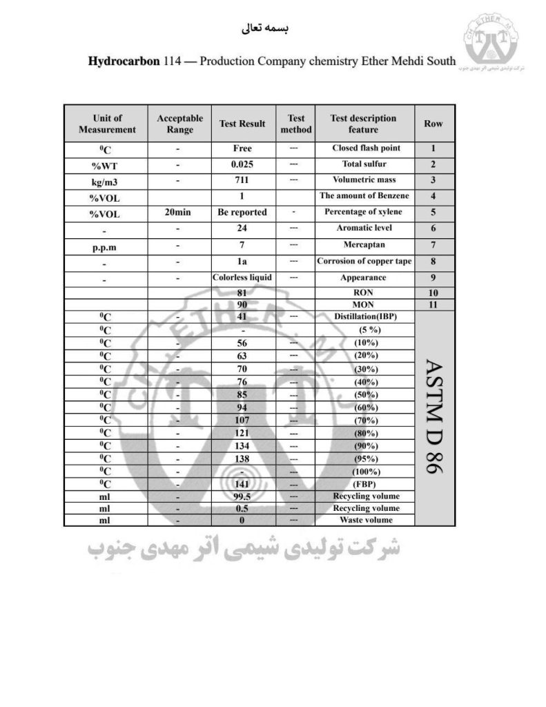 هیدروکربن سبک کد(بنزین) 114