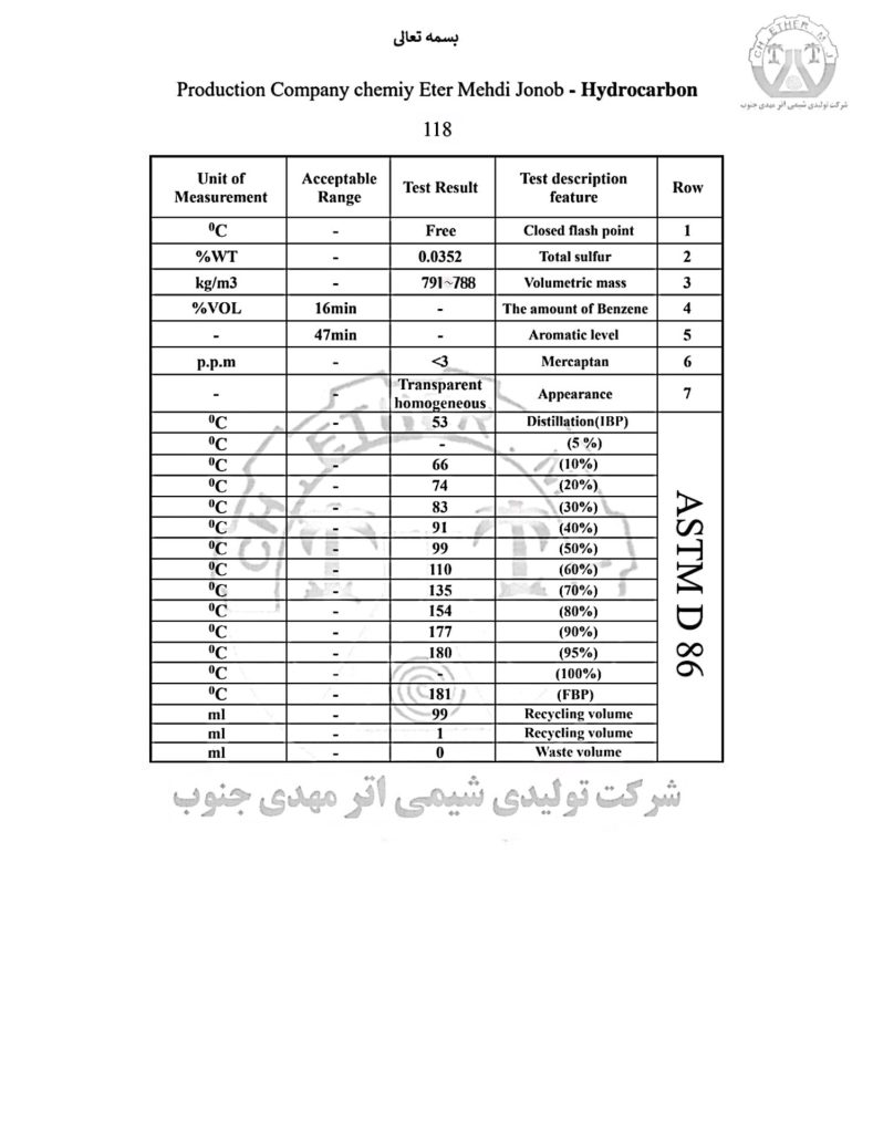 خانههیدروکربن سبک (بنزین ) کد 118هیدروکربن سبک (بنزین ) کد 118