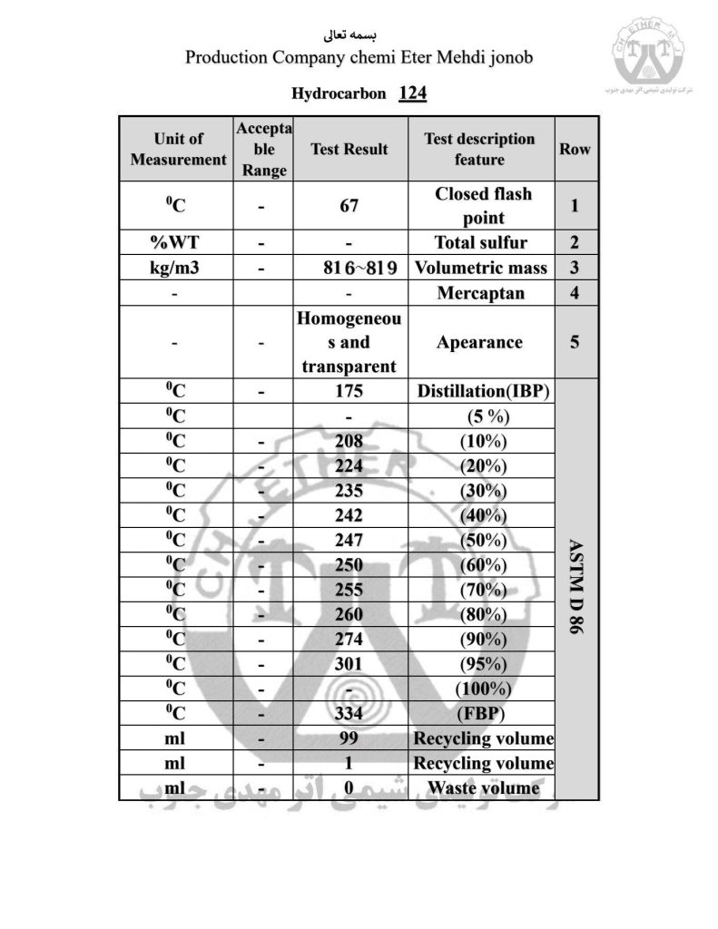هیدروکربن سبک (بنزین ) کد 124