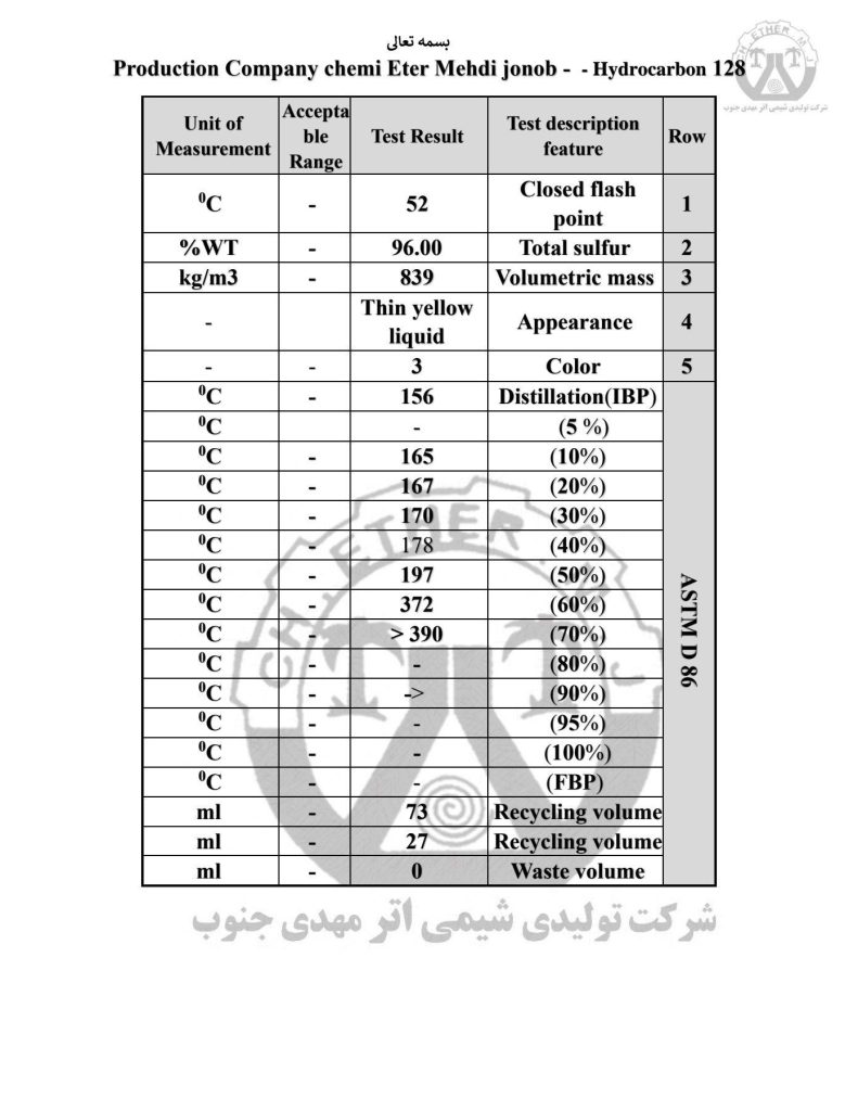 هیدروکربن سنگین (گازوئیل ) کد 128