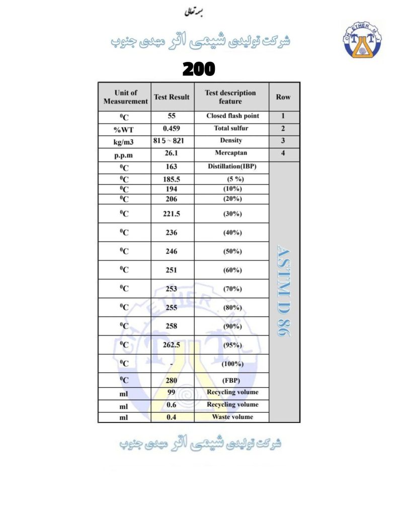 هیدروکربن سنگین (گازوئیل ) کد 200